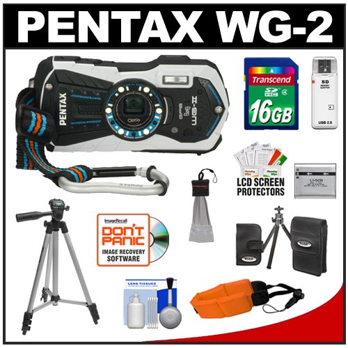 Pentax Optio WG-2 Shock & Waterproof GPS Digital Camera (Gloss White) with 16GB Card + Battery + Tripod + Case + Float Strap + Accessory Kit
